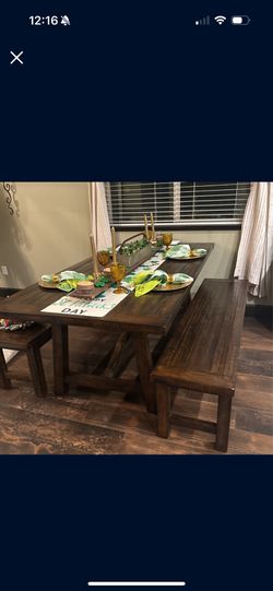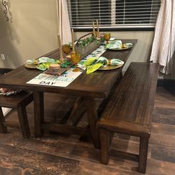 Macys Solid Wood Table With 2 Benches REDUCED$450West Linda, CA