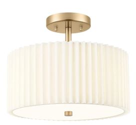 Gold Semi Flush Mount Ceiling Light, 3-Light 12.5" Ceiling Light Fixture with White Pleated Fabric Shade, Drum Lamp for Nursery Hallway Bedroom Kitche$40Greensboro, NC