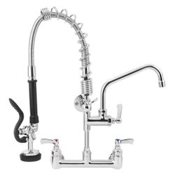 Open Box New 21" Height Commercial Faucet with Sprayer, 8" Adjustable Center & 8" Add-on Swing Spout, Wall Mount Pre Rinse Commercial Sink Faucet for $110Greensboro, NC