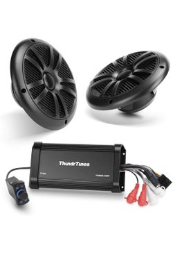 Marine Powersport Bluetooth Amplifier Audio System with 2pcs Black Speakers, Class D 60W x 4 CH, Switch Mount, Suitable for Motorcycle, UTV, ATV, Boat$85Greensboro, NC