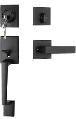 Open Box New Black Front Door Handle and Deadbolt Set, Entry Door Handle and Deadbolt with Reversible Handle Lever,Front Door Lock Set, Exterior Door $45Greensboro, NC