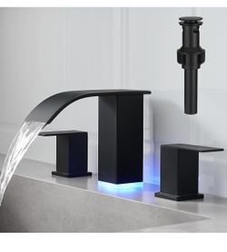 Open Box New RUMOSE LED Bathroom Faucets Set Matte Black 8 inch Bathroom Sink Faucet 3 Hole with Pop Up Drain Widespread Lavatory Waterfall Vanity Fau$40Greensboro, NC