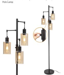 Farmhouse Floor Lamp 3 Lights Oil Rubbed Bronze Dimmable Floor Lamp, with Amber Glass Shade, for Living Room, Rustic, Vintage, Tree Standing lamp, Tal$55Greensboro, NC