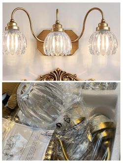 Gold Vanity Light, Vintage Bathroom Light Fixtures, 3-Light Matte Antique Brass Finish with Crystal Glass Shade, Mid Century Style Wall Sconces for Be$70Greensboro, NC