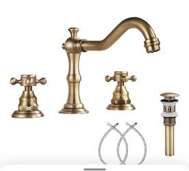 8 inch 2 Handles 3 Holes Widespread Bathroom Sink Faucet Antique Brass Bathroom Vanity Faucet Basin Mixer Tap Faucet Matching Metal Pop Up Drain with$45Greensboro, NC
