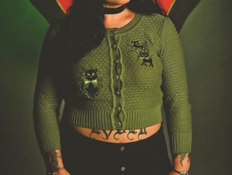 XL Rockabilly psychobilly Green cat & Spider Cardigan $50Los Angeles, CA
