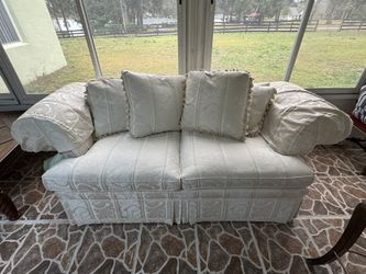 Elegant Ivory Damask Upholstered Sofa$75Lady Lake, FL