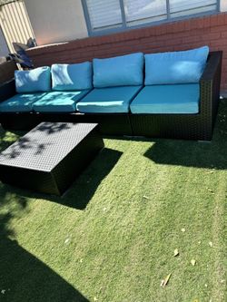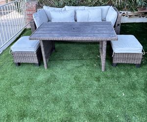 Very Nice Wicker Table With Couch, 2 Ottomans, And Cushions$170Las Vegas, NV