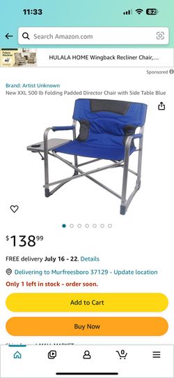 New XXL 500 lb Folding Padded Director Chair with Side Table Blue$45Smyrna, TN