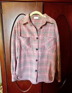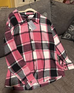Brand New With Tags PINK & BLACK PLAID FLANNEL SHACKET Size Large, Relaxed Fit, Shirt + Jacket = Shacket,$20Greenville, SC