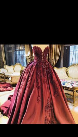 Beautiful burgundy and gold dress$400Dearborn, MI