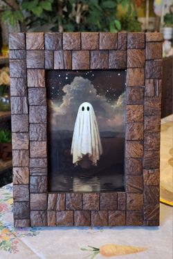 4x6 wooden checkered frame with a ghost print included wall hanging gallery art$15Las Vegas, NV