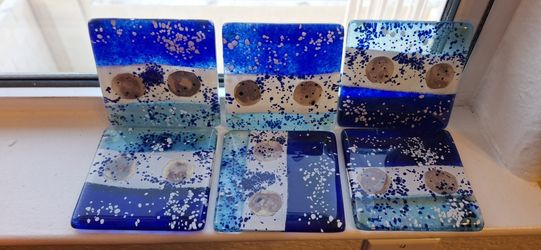 Fused ART Glass Coasters blue, Set of 6, Vintage, Coastal Vibes$20Las Vegas, NV