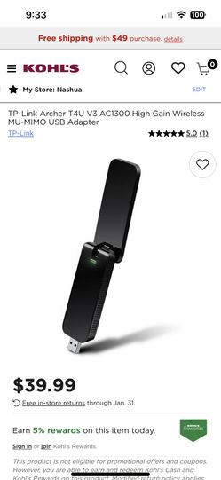 NEW: TP-LINK AC-1300 USB WiFi Adapter$30Pelham, NH