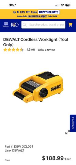 Dewalt DCL060 Work Light with Charger and Battery : Like new Condition$100Pelham, NH
