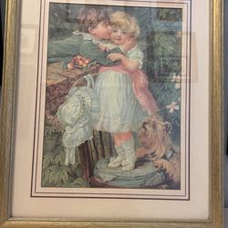 Adorable Boy Kissing Girl In The Garden. Professionally Framed $8Burnt Hills, NY