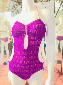 NWOT- OP Cut-out magenta lace one-piece halter swimsuit with coral liner removable strap size 7-9 Medium! Hard to find! $25Savannah, GA