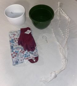 white hanging planter with a gold-colored rope hanger.$15Dandridge, TN