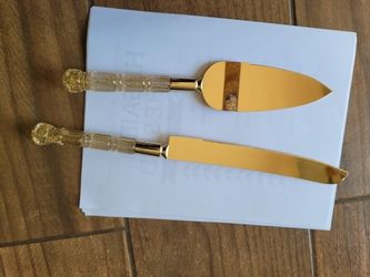 Wedding Cake Knife and Server Set with Glitter Gold Color Plastic Handles$10Beaumont, CA