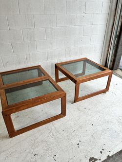Pair of mid-century modern teak tables, coffee table, end table with smoked glass panels, awesome look! Great condition, no chips, but the wood could $1,000Glenview, IL