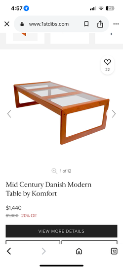 Pair of mid-century modern teak tables, KOMFORT coffee table, end table, smoked glass,$1,000Glenview, IL