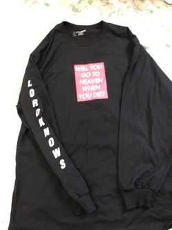 LORD LXRD KNOWS “will you go to heaven when you die?” Size L longsleeve$35La Habra, CA
