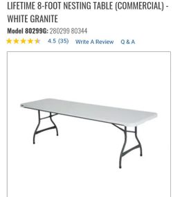 8ft Table- Lifetime Nesting Table (Stock Photo) New Still In Box$150Emmaus, PA