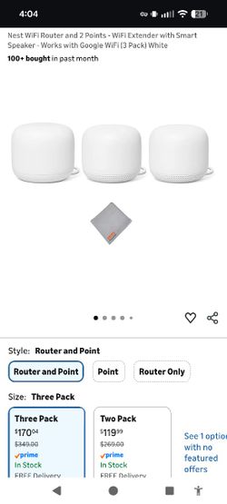 Google Nest Wi-Fi Router (H2D) and 2 Google Wifi Point (H2E) Mesh Wi-Fi extenders and smart speakers$100Hawthorne, CA