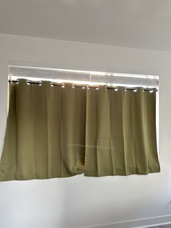 Olive green thermal, black out curtains With Tension Rods$100Irvine, CA