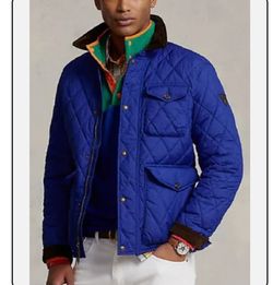 Polo Ralph Lauren Men's Water-Repellent Quilted Jacket in heritage royal blue with a corduroy point collar. $80Mableton, GA