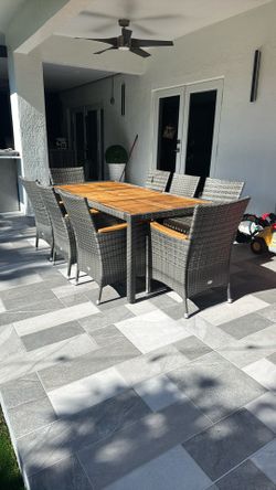 9 PCS Outdoor Wooden Dining Table & Chairs $499Miami, FL