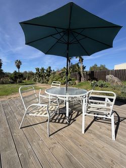 Vintage White Aluminum Frame Outdoor Patio Dining Set w/ Glass Tabletop & 4 Chairs 🪑$75Vista, CA