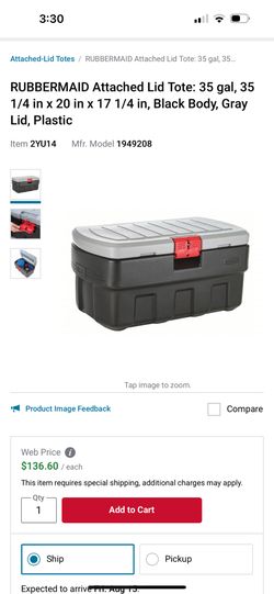 RUBBERMAID Attached Lid Tote: 35 gal$100Oakland, FL