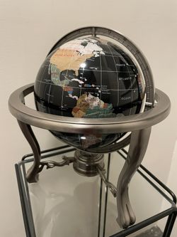 14” Black Ocean Siver 3-leg Table Stand Gemstone World Map Globe$35Yonkers, NY