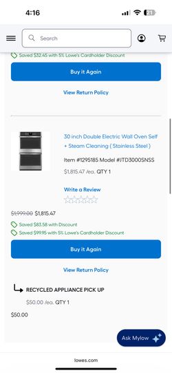 30 inch Double Electric Wall Oven Self + Steam Cleaning (Stainless Steel) Item #1295185 Model #JTD3000SNSS$1,500Loma Linda, CA