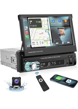 Podofo Single Din Carplay Car Stereo with Bluetooth AHD Backup Camera, 7 Inch flip Out Touch Screen Car Radio MP5 Player Support Android Auto, Mirror $35Ontario, CA