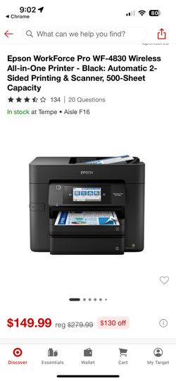 Epson WorkForce Pro WF-4830 Wireless All-in-One Printer$70Scottsdale, AZ