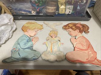 Vintage 1950's Praying Girl & Boy Pressed Cardboard Wall Art with Angel & Doves$25La Habra Heights, CA