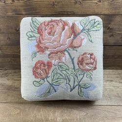 Vintage Needlepoint Floral Roses Footstool w/ Bun Feet (11.5” x 12”)$35San Antonio, TX
