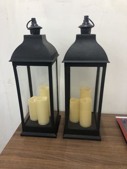 Two Huge 28” Black Lanterns, With 3 Battery Lit Candles Pillars$49Wall Township, NJ