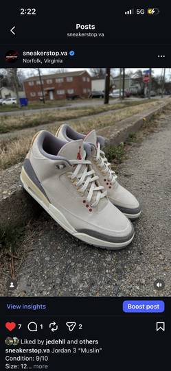 Jordan 3 “Muslin”$160Virginia Beach, VA