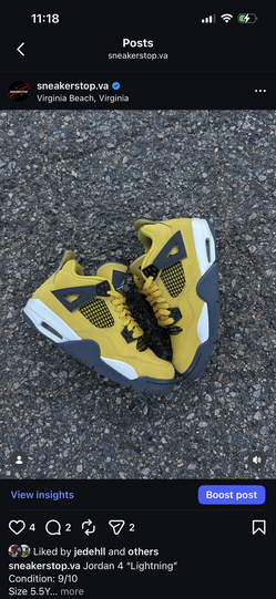 Jordan 4 “Lightning”$100Virginia Beach, VA