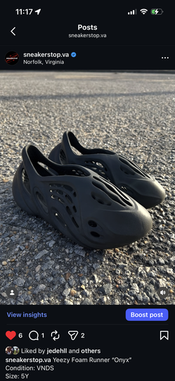 Yeezy Foam Runner “Onyx”$60Virginia Beach, VA