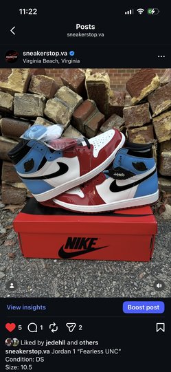 Jordan 1 “Fearless UNC”$220Virginia Beach, VA
