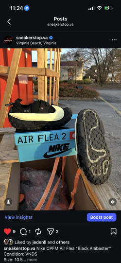 Nike CPFM Air Flea “Black Alabaster”$320Virginia Beach, VA
