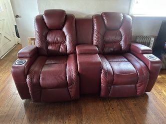 Red Leather Power Reclining Loveseat – USB & LED Cup holders $250Oceanside, CA
