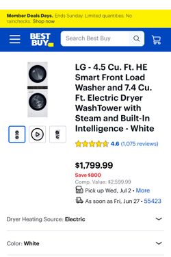 LG 4.5 Cu. Ft. Washer & 7.4 Cu. Ft. Electric Dryer WashTower – Like New! $1,000 (Retails $1,799)$900San Fernando, CA