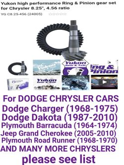 Yukon high performance Ring & Pinion gear set for Chrysler 8.25", 4.56 ratio