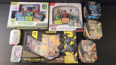 New Pokemon Big Lot Pikachu & Zekrom GX Premium Collection Box 151 Poster Paldea Adventure Eeveelution Prismatic Evolutions Tins$400San Dimas, CA