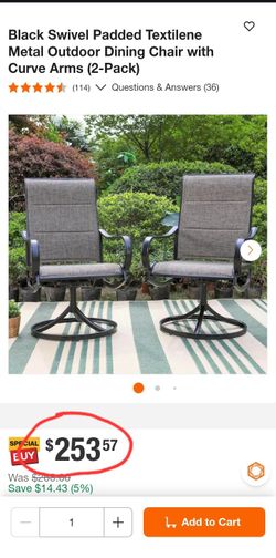 Swivel Padded Metal Outdoor Patio Chair with Curve Arms (2-Pack)$120Houston, TX
